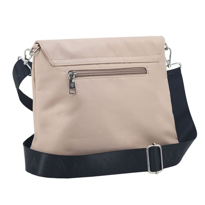 Características: - Apertura mediante solapa – Una división – Interior forrado – Bolsillo interno con cierre – Bolsillo en el dorso con cierre – Corra extensible – Detalle de herrajes plateados – Material: poliéster – Medidas aproximadas: alto 21 cm, x ancho 25 cm, x profundidad 9 cm -