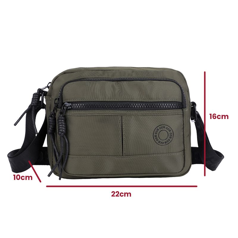Características: - Una división – Bolsillos internos abiertos y otro con cierre – Dos bolsillos frontales con cierre – Detalle de logo de la marca frontal – Cierres y herrajes negros – Correa extensible hasta 130 cm – Material: microfibra – Medidas aproximadas: alto 16 cm, x ancho 22 cm, x profundidad 10 cm -