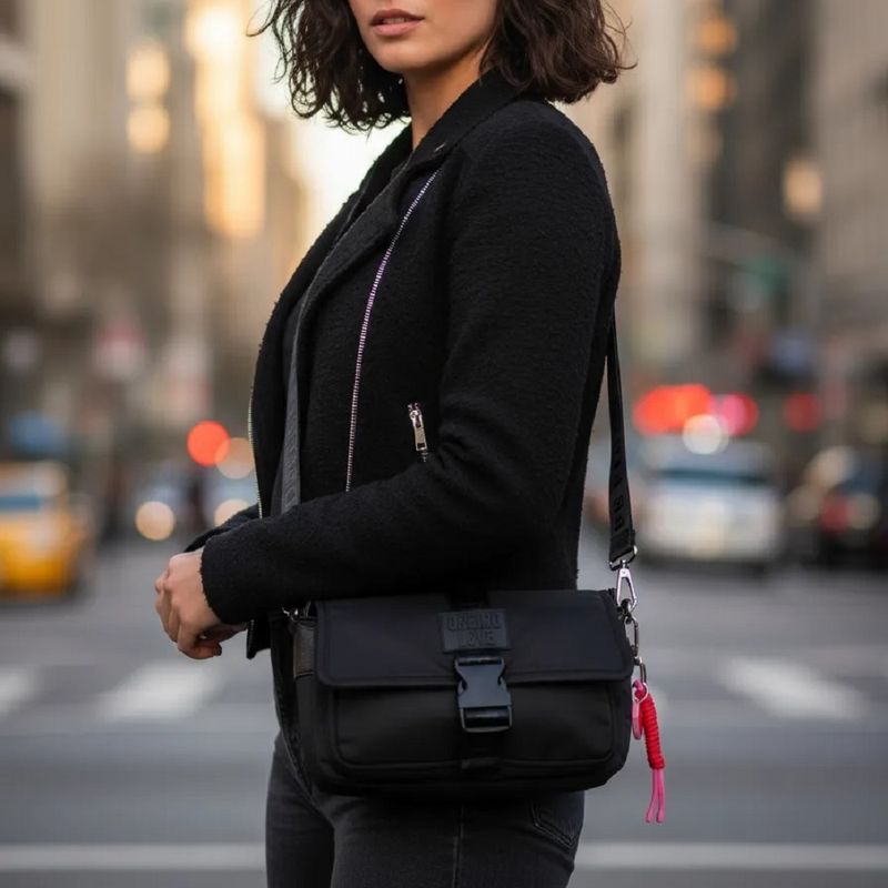 Características: - Apertura mediante hebilla – Una división – Bolsillos internos – Tira extraíble y extensible – Bolsillo frontal – Material: microfibra – Medidas aproximadas: alto 18 cm x ancho 27 cm, x profundidad 10 cm -