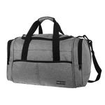 Características: - Una división principal - Bolsillo frontal con cierre oculto - Bolsillo con cierre en cada lateral - Logo de la marca frontal engomado - Tiras fijas con velcro de 74 cm cada una - Correa larga extraíble y extensible hasta 104 cm - Material: poliéster jaspeado - Medidas aproximadas: alto 32 cm, x ancho 59 cm (incluyendo bolsillos laterales), x profundidad 24 cm -