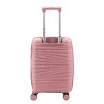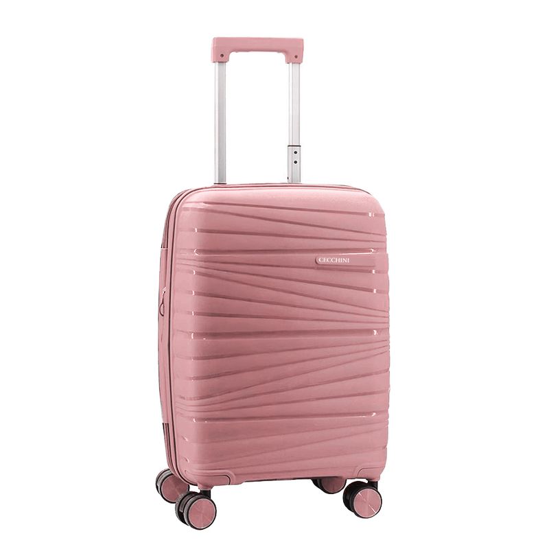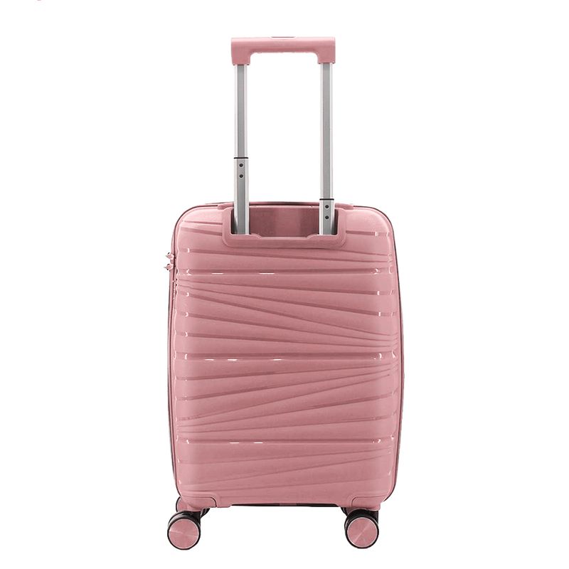 Características de la valija: - Interior forrado – De un lado presenta organizador con bolsillos abiertos y con cierre – Del otro tiras de ajuste – Tirador con botón liberador en tres posiciones con un alto de 101 cm – Sistema Spinner de 4 ruedas dobles – Candado incorporado – Fuelle expansible – Asa superior – Trama de líneas horizontales – Material: polipropileno – Peso: 2,760 kg – Medidas aproximadas: alto 55 cm, x ancho 35 cm, x profundidad 22 cm .