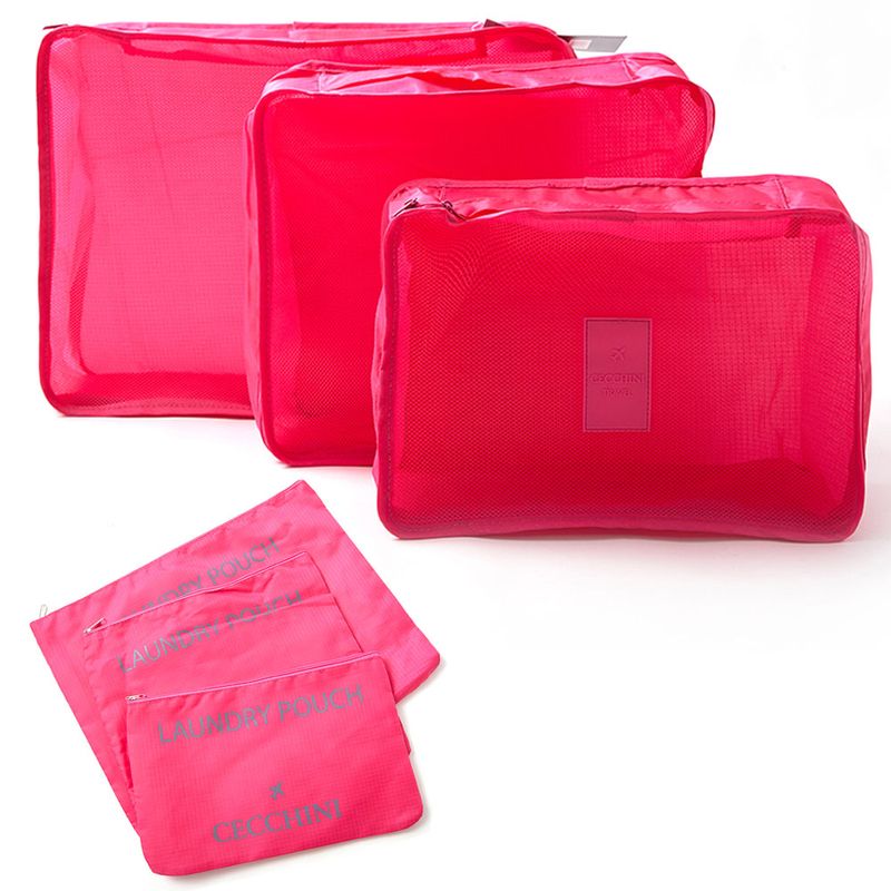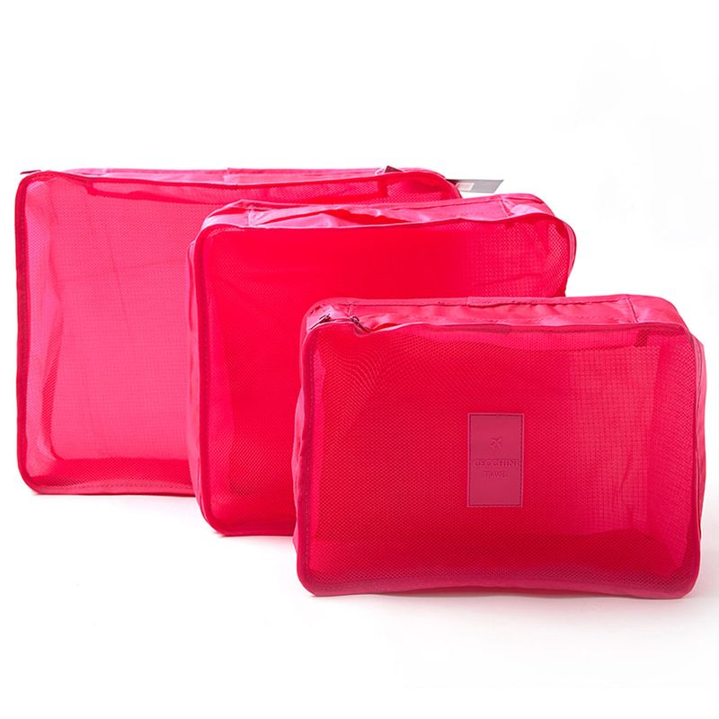 Ordenador de viaje. Incluye 6 piezas en total. Tres bolsas con cierre: *34 x 27cm *27 x 27 cm *26 x 16 cm Tres organizadores con altura y tapa en red: *40 x 29 x 13 cm *32 x 29 x 13 cm *30 x 22 x 13 cm