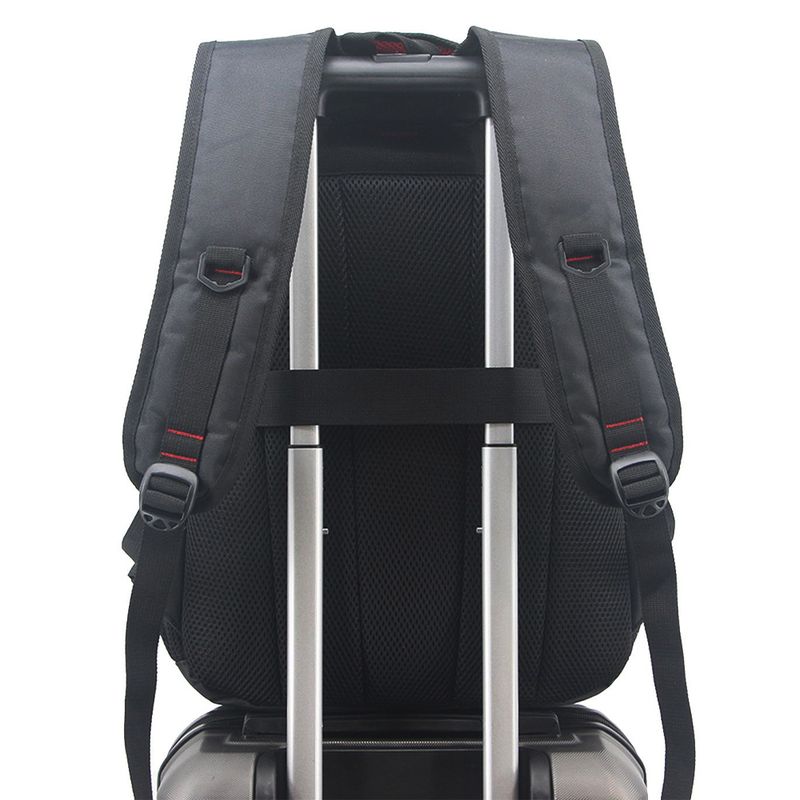 Características de la mochila: Dos divisiones - Interior forrado - Compartimiento para notebook de 19" - Conexión de puerto USB - Bolsillo frontal con cierre – Bolsillos laterales de red - Asa corta de agarre reforzada - Tira corta para colgar – Correas y espalda acolchadas –Correa de ajuste para valija -Material: poliéster - Medidas aproximadas: alto 45 cm, x ancho 32 cm, x profundidad 17 cm.