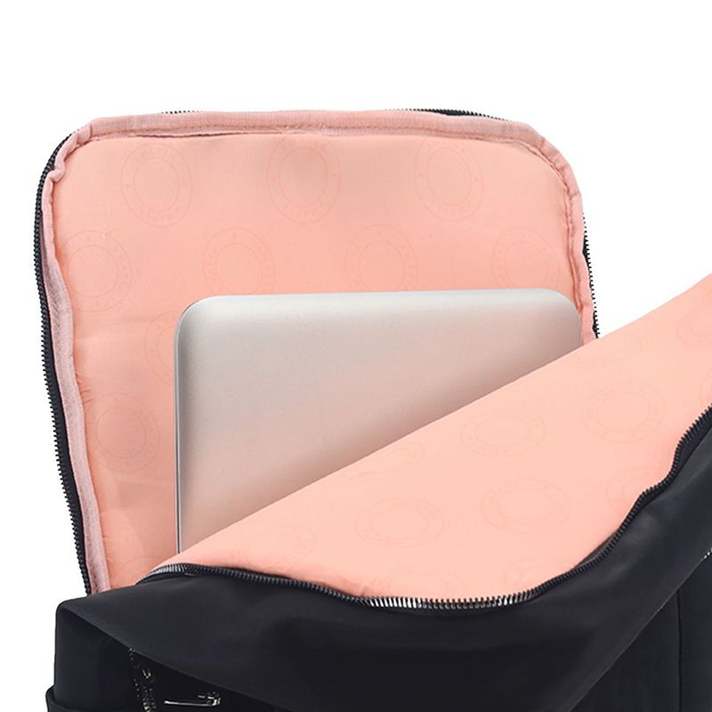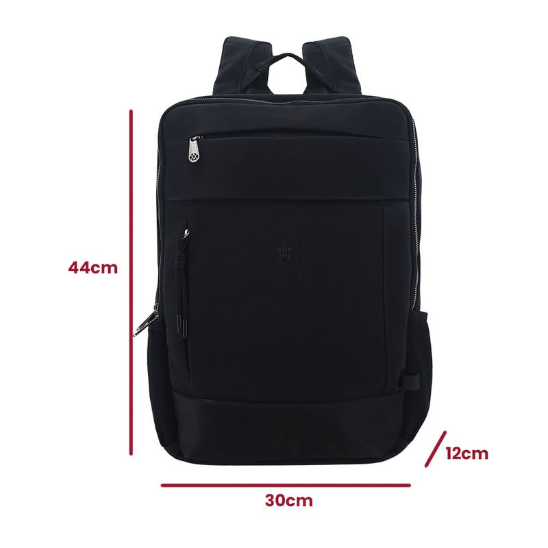 Características: - Dos divisiones – Interior forrado - Compartimiento para notebook acolchado – Bolsillo frontal con cierre – Asa superior – Tiras extensibles – Tira en el dorso para equipaje – Material: PU – Medidas aproximadas: alto 44 cm, x ancho 30 cm, x profundidad 12 cm -
