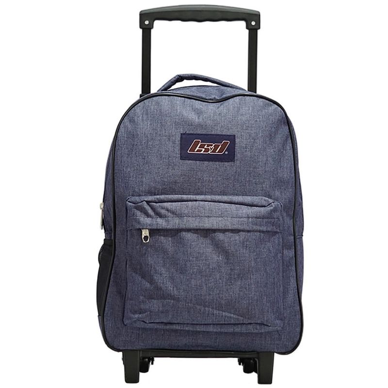 Características: 1 compartimiento - Bolsillo con cierre en su frente - Bolsillo de red en uno de sus laterales - No presenta correas para llevar sobre la espalda - Carro metálico con PVC, el cual tiene una altura máxima de 80 cm - Ruedas dobles tipo rolles de silicona - Confeccionada: Poliester - Medidas aproximadas: 49 cm de alto (Incluye ruedas), x 31 cm de ancho, x 18 cm de profundidad.