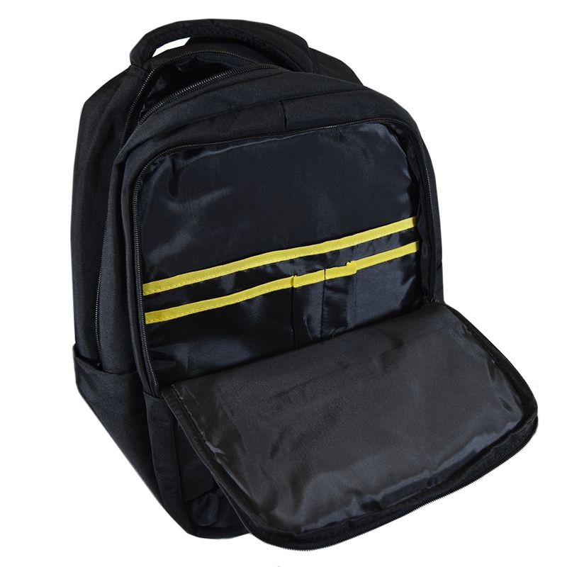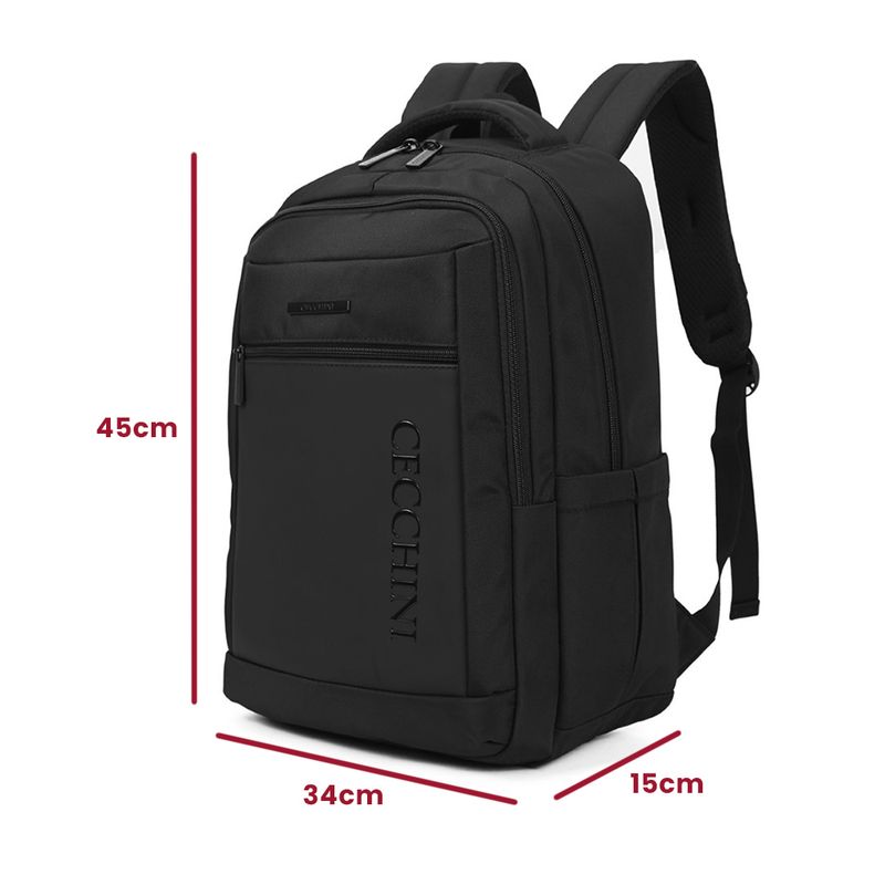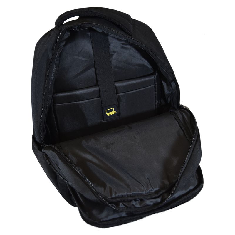 Características: - 2 Divisiones – Interior forrado – División acolchada exclusiva para notebook con elástico de fijación - La otra con espacios organizadores abiertos - Bolsillo frontal con cierre – Bolsillo abierto en cada lateral - Tira corta de agarre acolchada – Dorso y tiras con Air Mesh – Bolsillo abierto en el dorso y otro con cierre - Tiras extensibles hasta 90 cm cada una – Detalle de recortes en PU – Material: poliéster – Medidas aproximadas: alto 45 cm, x ancho 34 cm, x profundidad 15 cm -