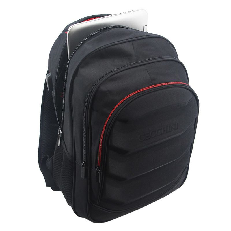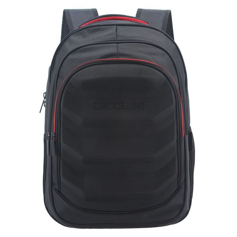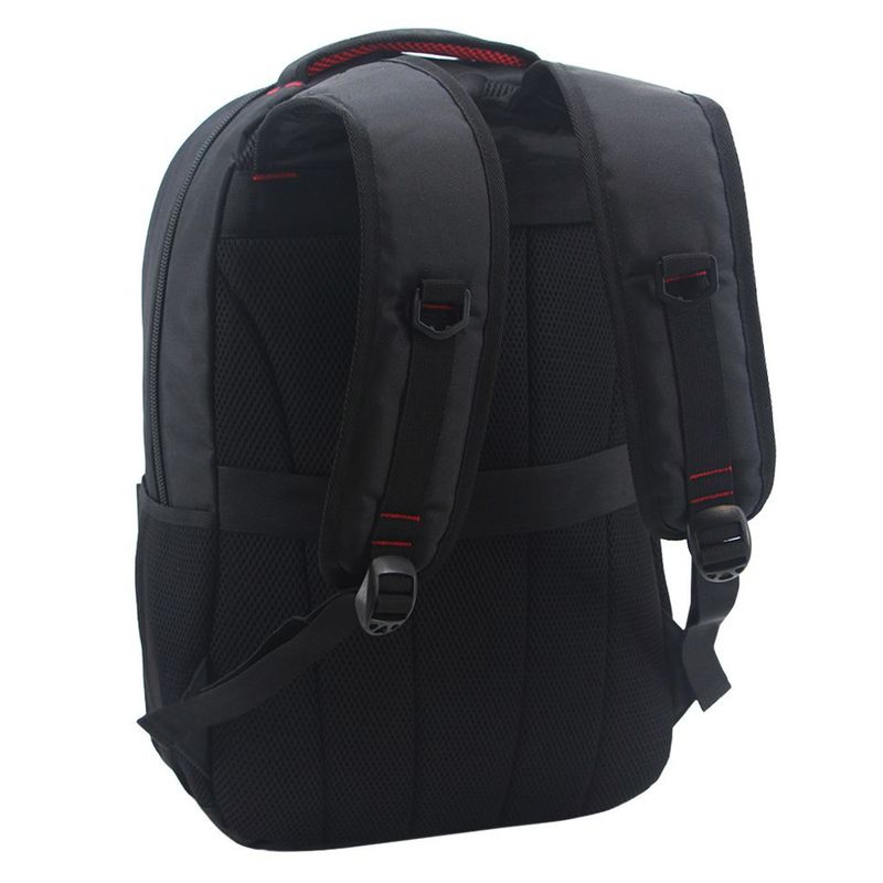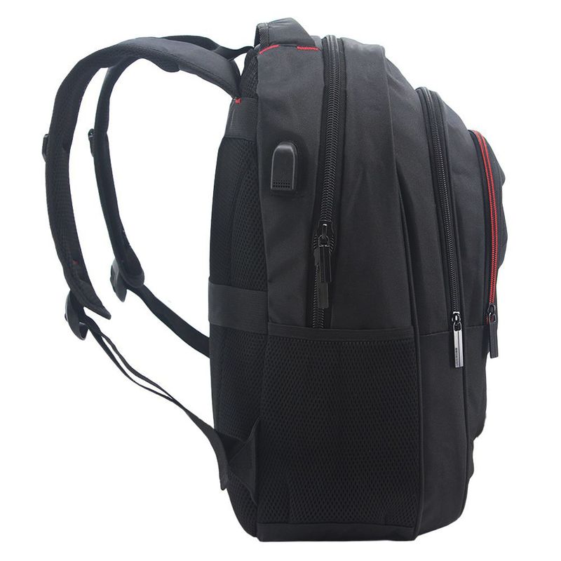 Características: Dos divisiones - Interior forrado - Compartimiento para notebook de 19" - Conexión de puerto USB - Bolsillo frontal con cierre – Bolsillos laterales de red - Asa corta de agarre reforzada - Tira corta para colgar – Correas y espalda acolchadas –Correa de ajuste para valija -Material: poliéster - Medidas aproximadas: alto 45 cm, x ancho 32 cm, x profundidad 17 cm.