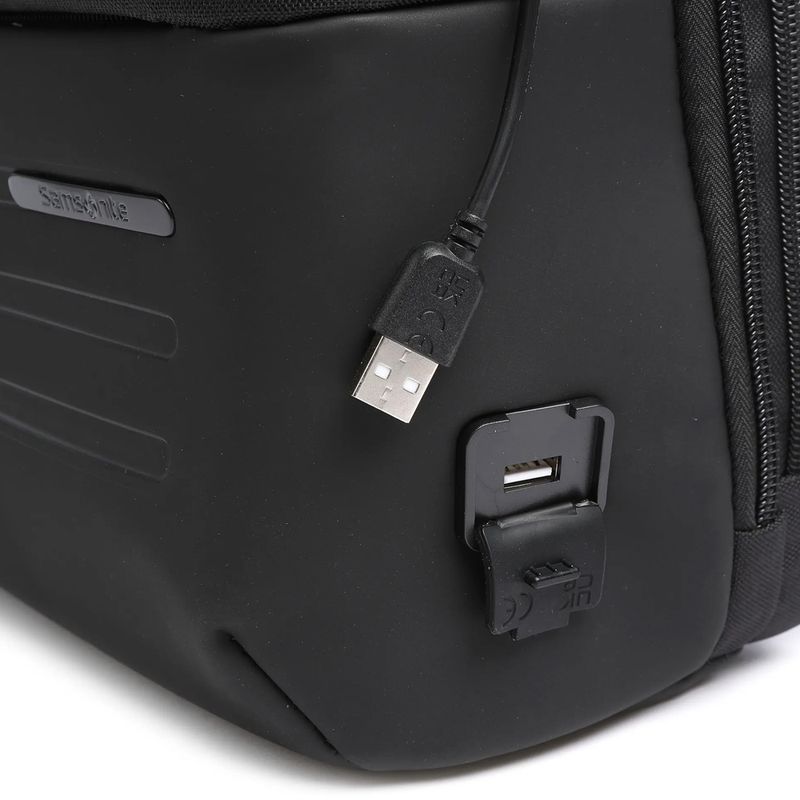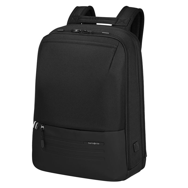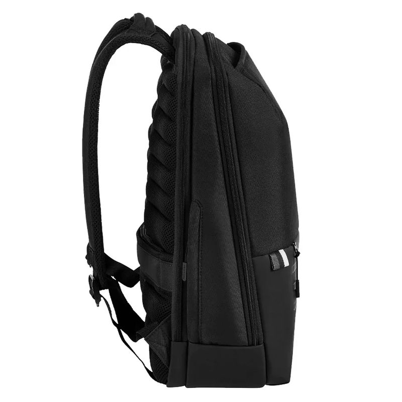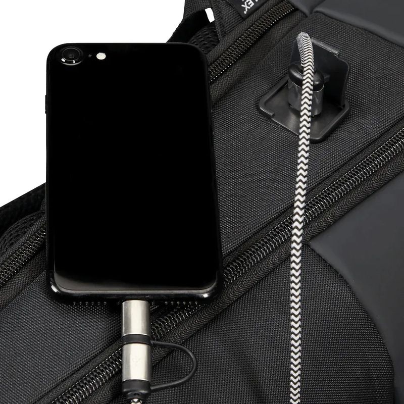 Características: - Dos divisiones – Interior forrado – Compartimiento porta notebook o dispositivo 15.6" – Puerto USB integrado – Bolsillo frontal con cierre – Bolsillo lateral para botella – Material: poliéster – Medidas aproximadas: alto 44 cm, x ancho 31 cm, x profundidad 18 cm -