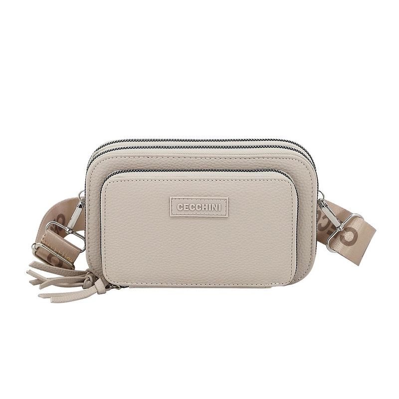 Características: - Tres divisiones – Interior forrado – 4 espacios para identificaciones, credenciales, tarjetas – 5 espacios para papeles, billetes – 1 espacio con cierre para mayor seguridad – Detalle de aplique engomado con logo de la marca – Correa extraíble y extensible - Material: PU graneado – Medidas aproximadas: alto 13 cm, x ancho 20 cm, x profundidad 7 cm -