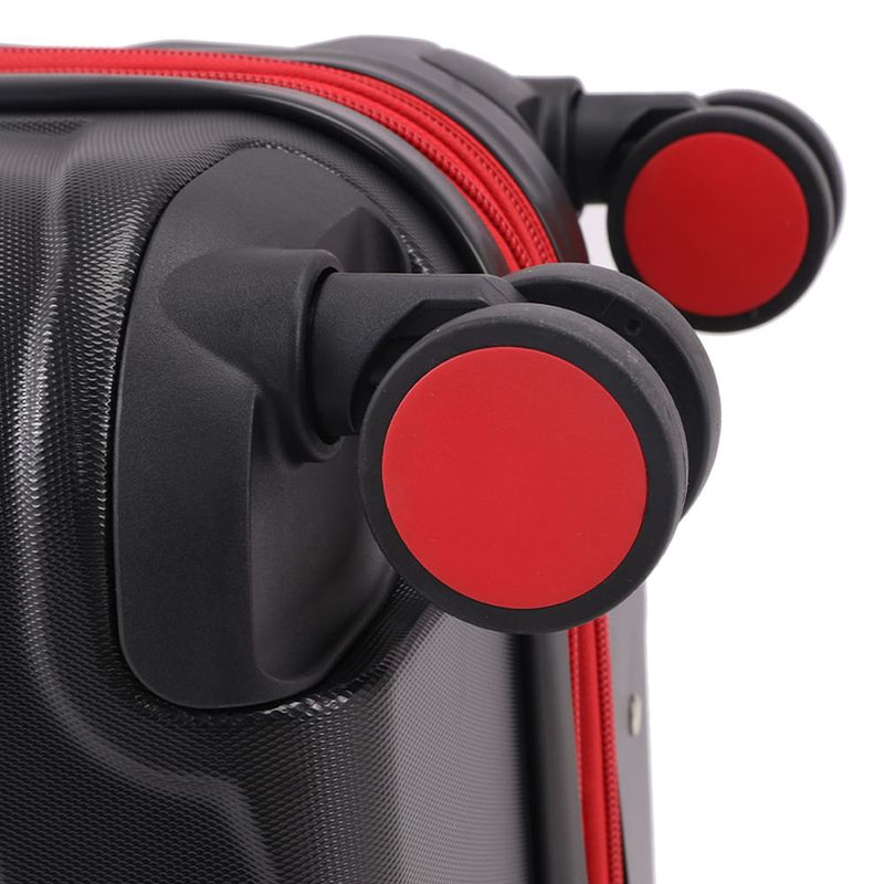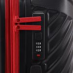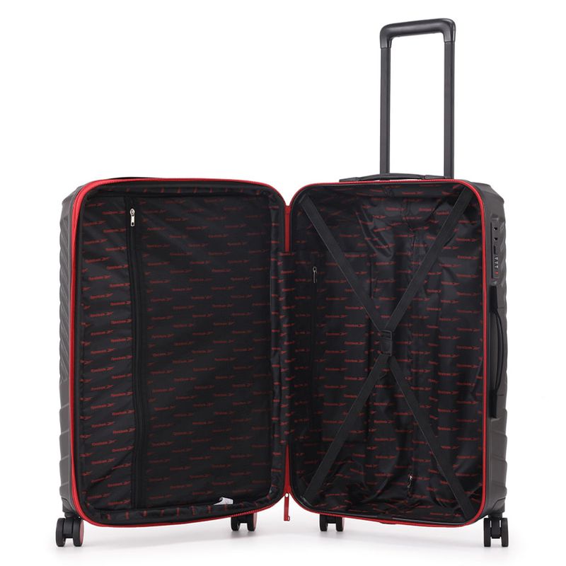 Características: Interior forrado – De un lado presenta cintas de ajuste y del otro, bolsillo organizador con cierre – Asa superior y lateral – Candado incorporado – Cuatro ruedas Spinner dobles – Carro con botón liberador en tres posiciones, con una altura de 103 cm (incluyendo ruedas) – Fuelle expansible – Topes de apoyo en uno de sus laterales.