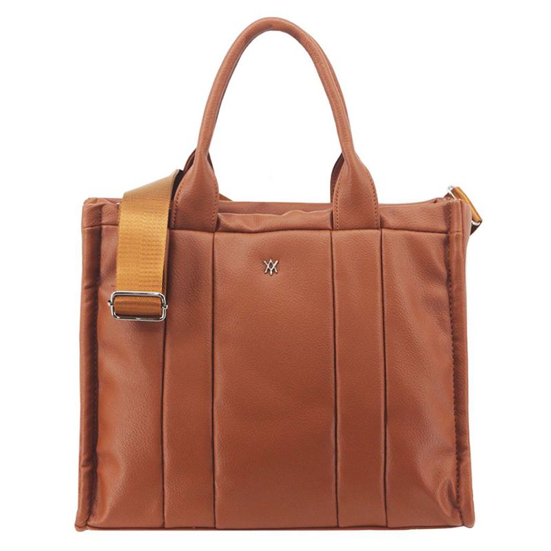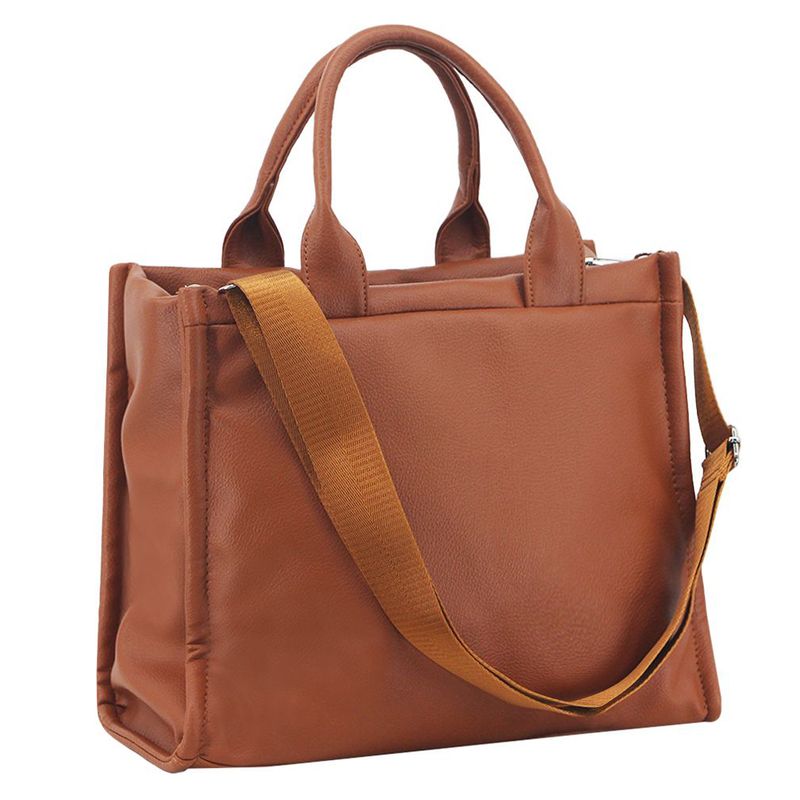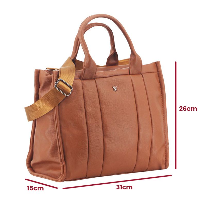 Características: - Una división – Interior forrado – Dos bolsillos internos abiertos y otro con cierre – Manija doble de 41 cm cada una – Correa extraíble y extensible hasta 114 cm – Detalle de recortes – Herrajes plateados – Material: PU – Medidas aproximadas: alto 26 cm, x ancho 31 cm, x profundidad 15 cm -