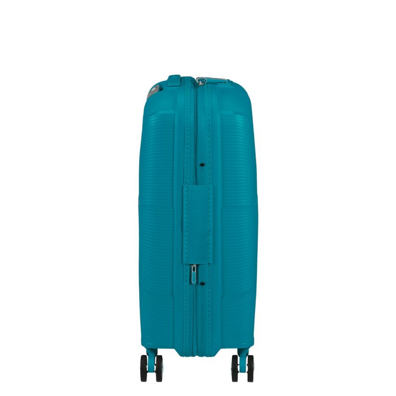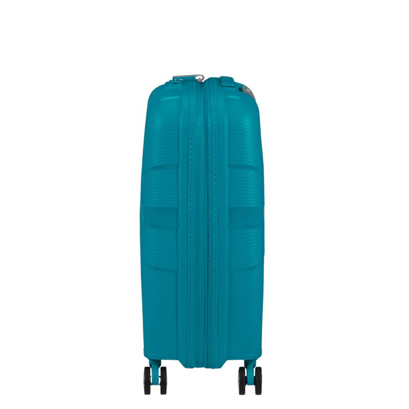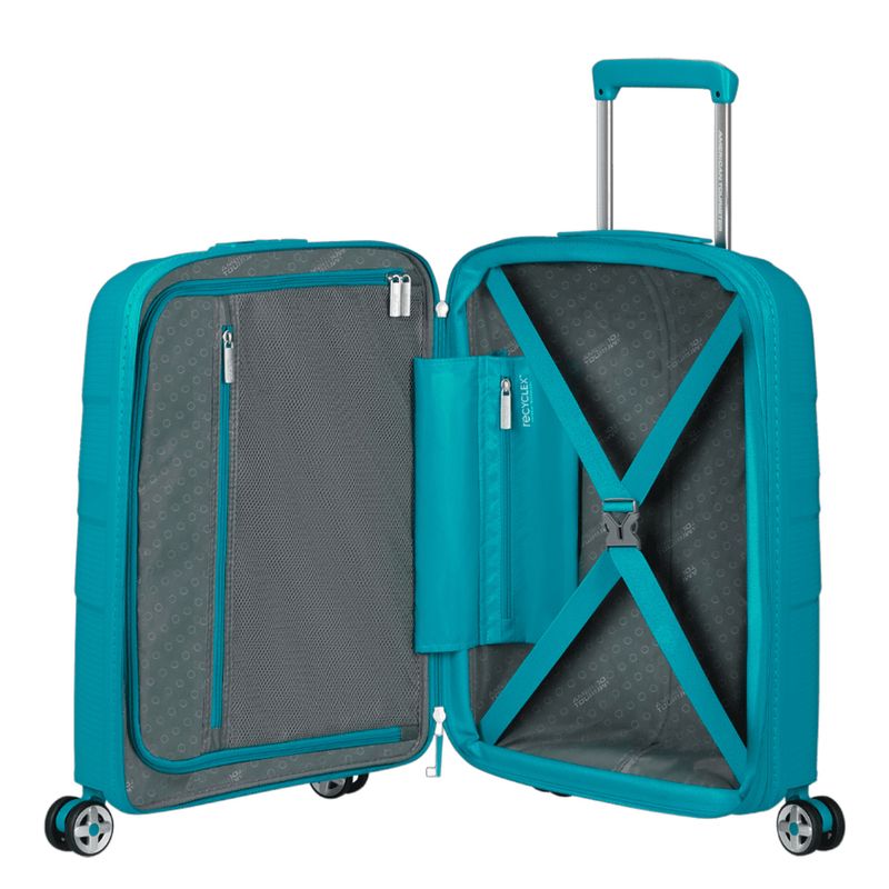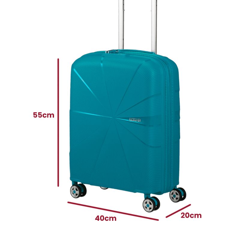 Características: - Interior forrado – De un lado tiras de ajuste, del otro bolsillos organizadores - Asa superior – 4 ruedas dobles Spinner – Fuelle expandible – Candado incorporado TSA – Peso: 2,3 kg – Material: polipropileno - Medidas aproximadas: alto (incluyendo ruedas) 55 cm, x ancho 40 cm, x profundidad 20 cm -