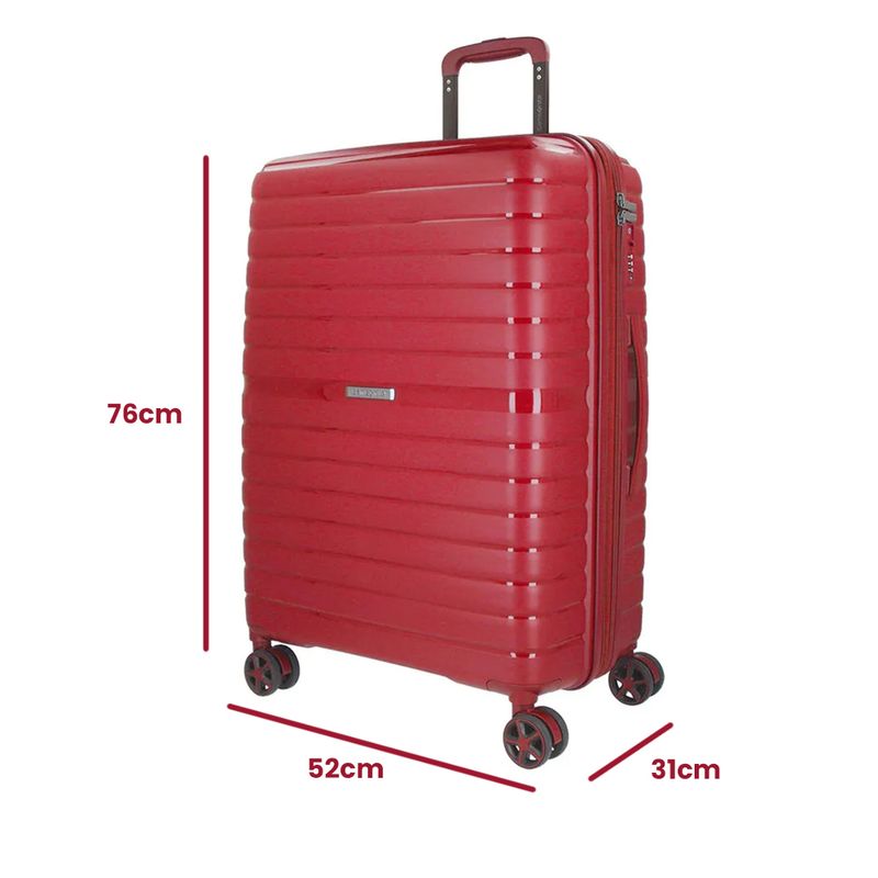 Características: - Sistema de cintas cruzadas premium para mantener todo en su lugar - Panel divisor inteligente para una organización impecable - Forro interior de materiales reciclados, uniendo capacidad y conciencia ambiental - Ruedas Spinner dobles de alta calidad para una movilidad excepcional - Diseño expandible que se adapta a viajes de cualquier duración - Candado TSA integrado para viajar sin preocupaciones - Acabado monocromático en todos sus componentes – Material: - polipropileno – Peso: 4.300 kg - Medidas aproximadas: alto 76 cm, x ancho 52 cm, x profundidad 31 cm -